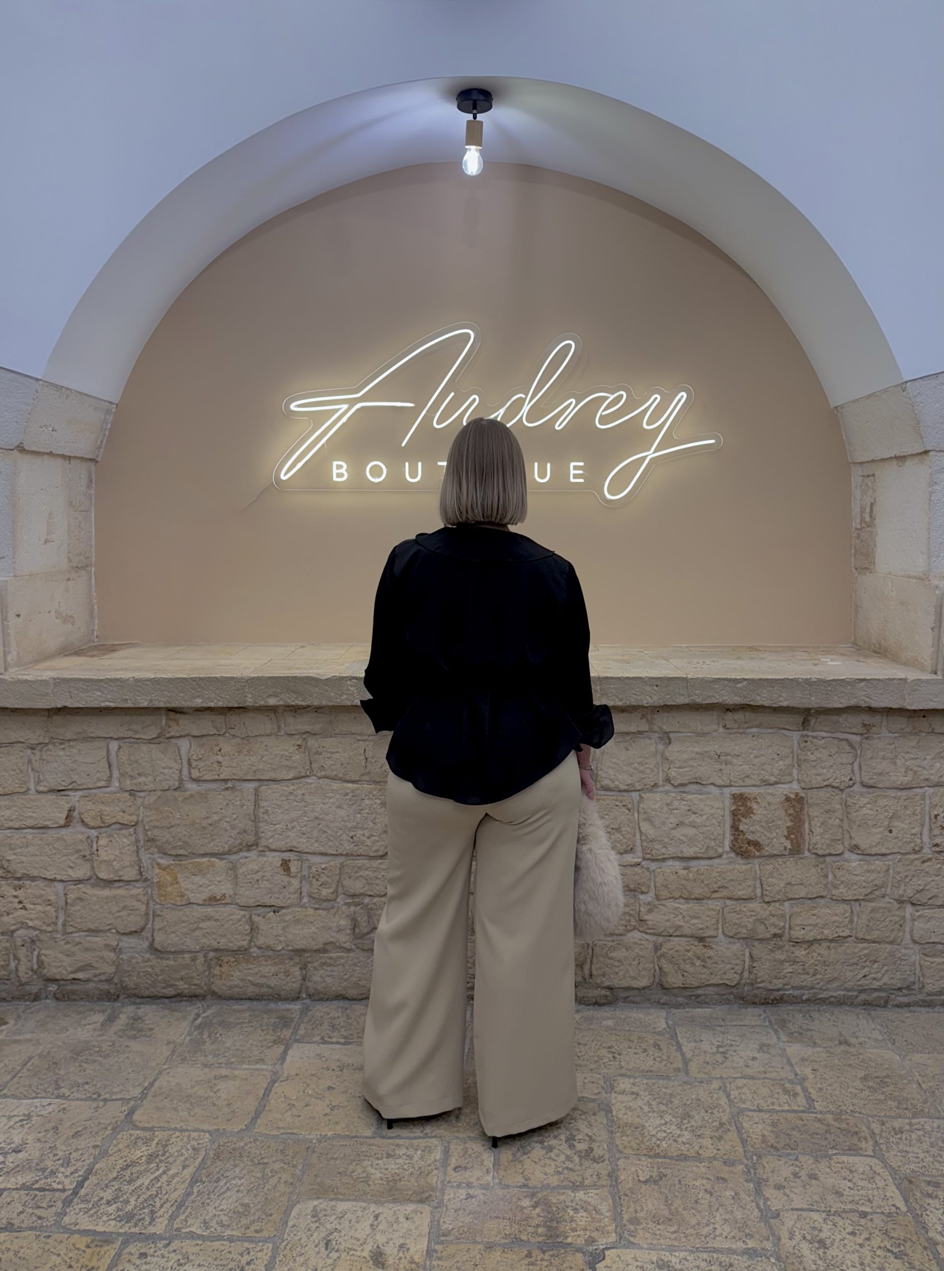 Pantalone dal taglio classico in linea morbida, realizzato in tessuto fluido leggero. Il modello presenta pences frontali, vita elastica sul retro e passanti per cintura, garantendo una vestibilità comoda e raffinata. Perfetto per un outfit da ufficio, o occasioni speciali o look casual chic.