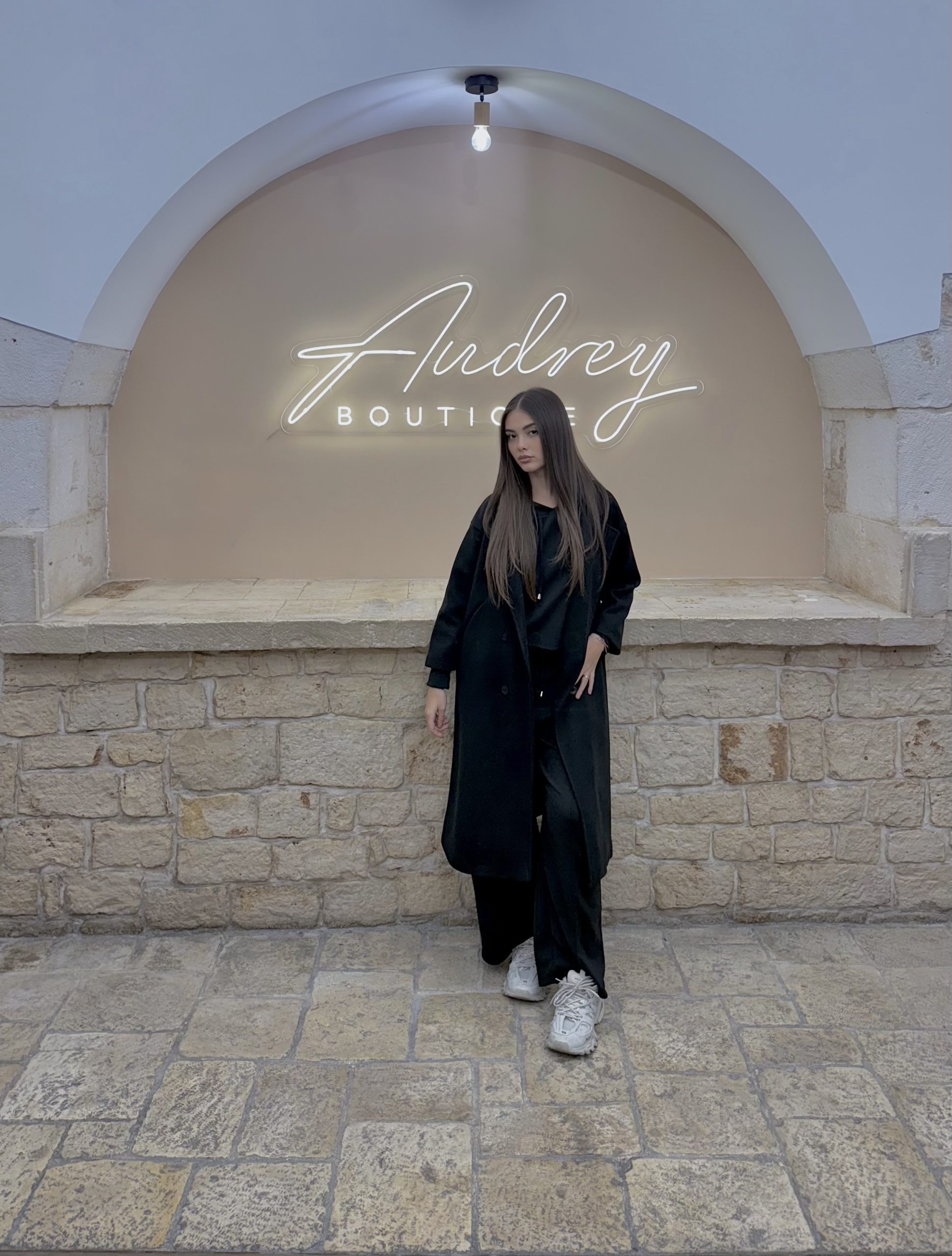 Un capospalla che unisce eleganza e praticità. Questo cappotto lungo presenta una linea morbida e leggermente over, perfetta per ogni look. Realizzato in un tessuto caldo e strutturato, offre comfort e stile in ogni occasione. Il design minimale con revers classici e chiusura a bottoni rende questo cappotto un must-have per la stagione.