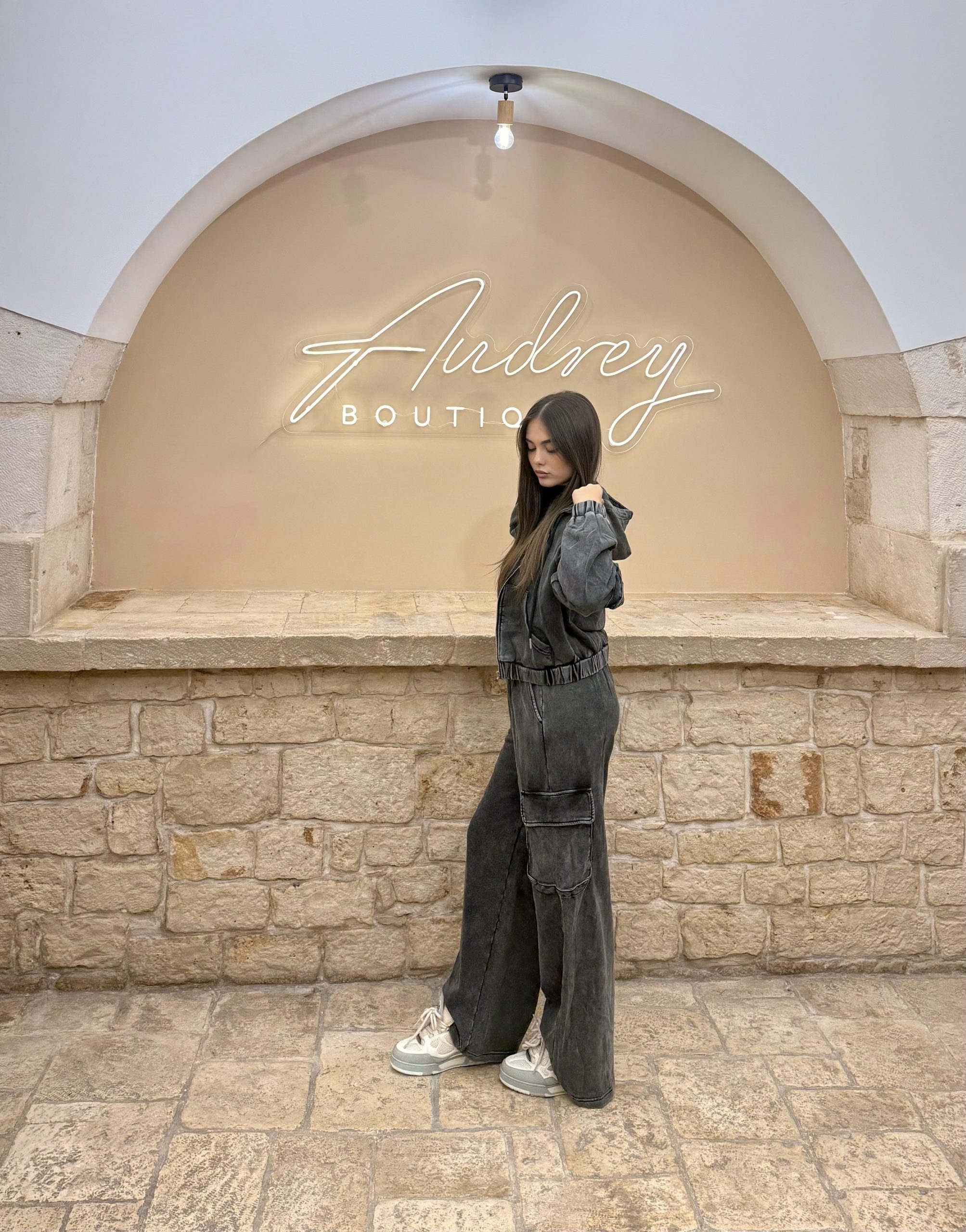 Stile Casual e carattere urbano. La tuta jeans effect è composta da una felpa con cappuccio, zip frontale e tasche, impreziosita da un dettaglio cargo sulla manica per un tocco street. Il pantalone, coordinato, presenta una vestibilità comoda con vita elasticizzata e fondo morbido, perfetto per un look rilassato ma di tendenza.