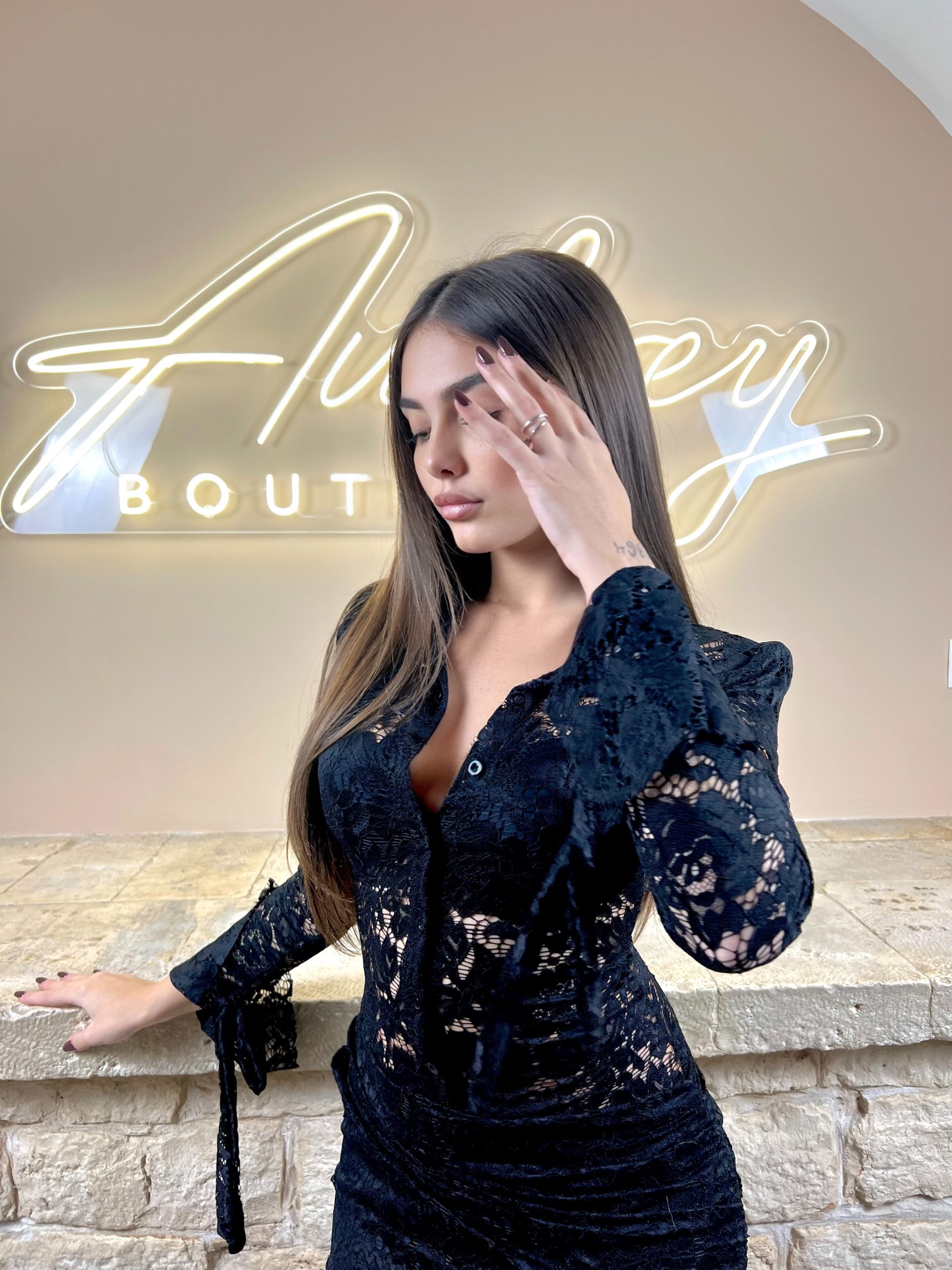 Il vestito Charm unisce la delicatezza del pizzo a un taglio moderno e aderente. Il corpetto in pizzo trasparente ricorda una camicetta raffinata, mentre la gonna corta valorizza la silhouette con eleganza. Perfetto per serate speciali o eventi in cui vuoi distinguerti con stile sofisticato e femminile.