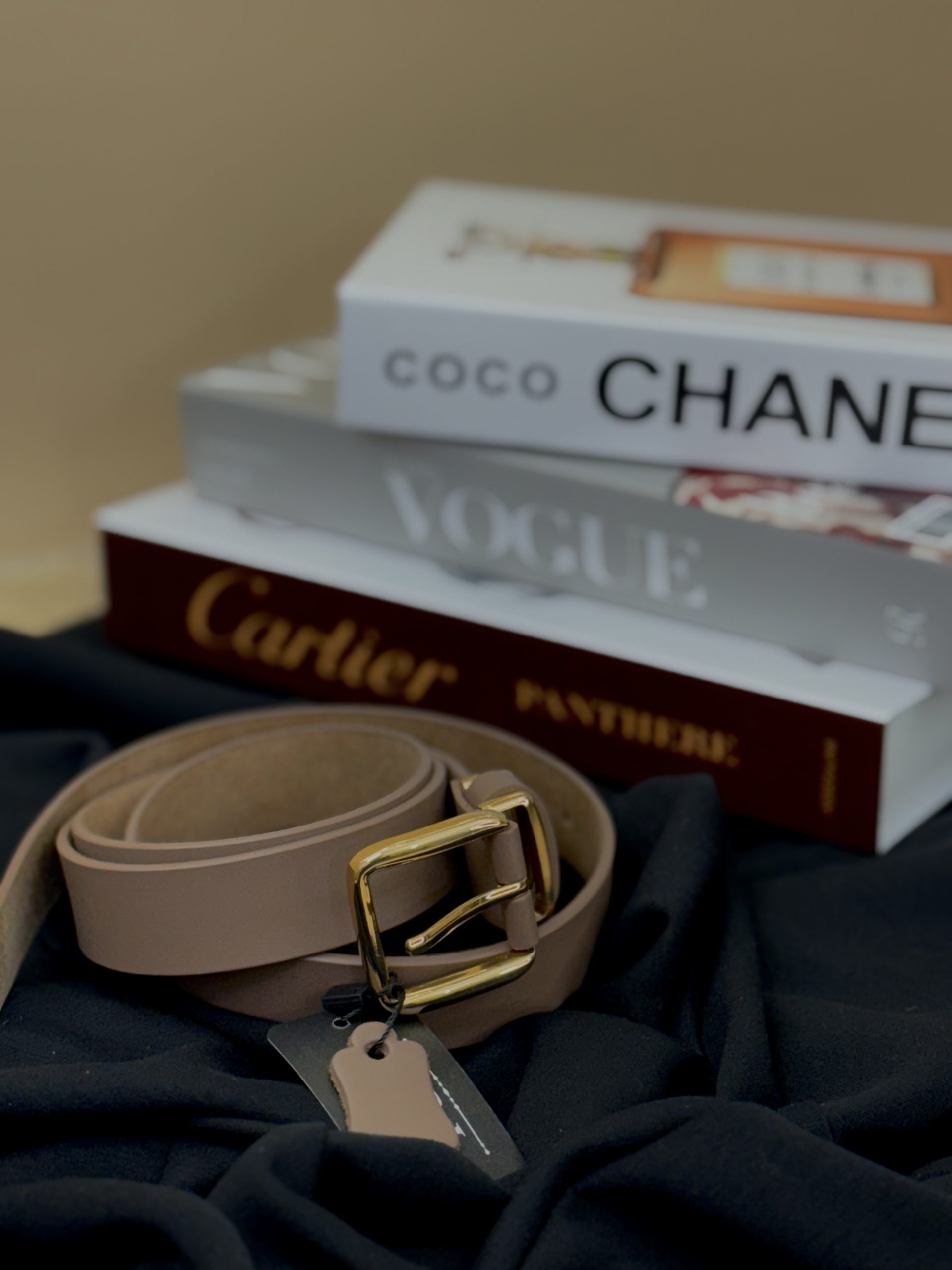 Cintura in pelle con fibbia dorata, elegante e versatile.